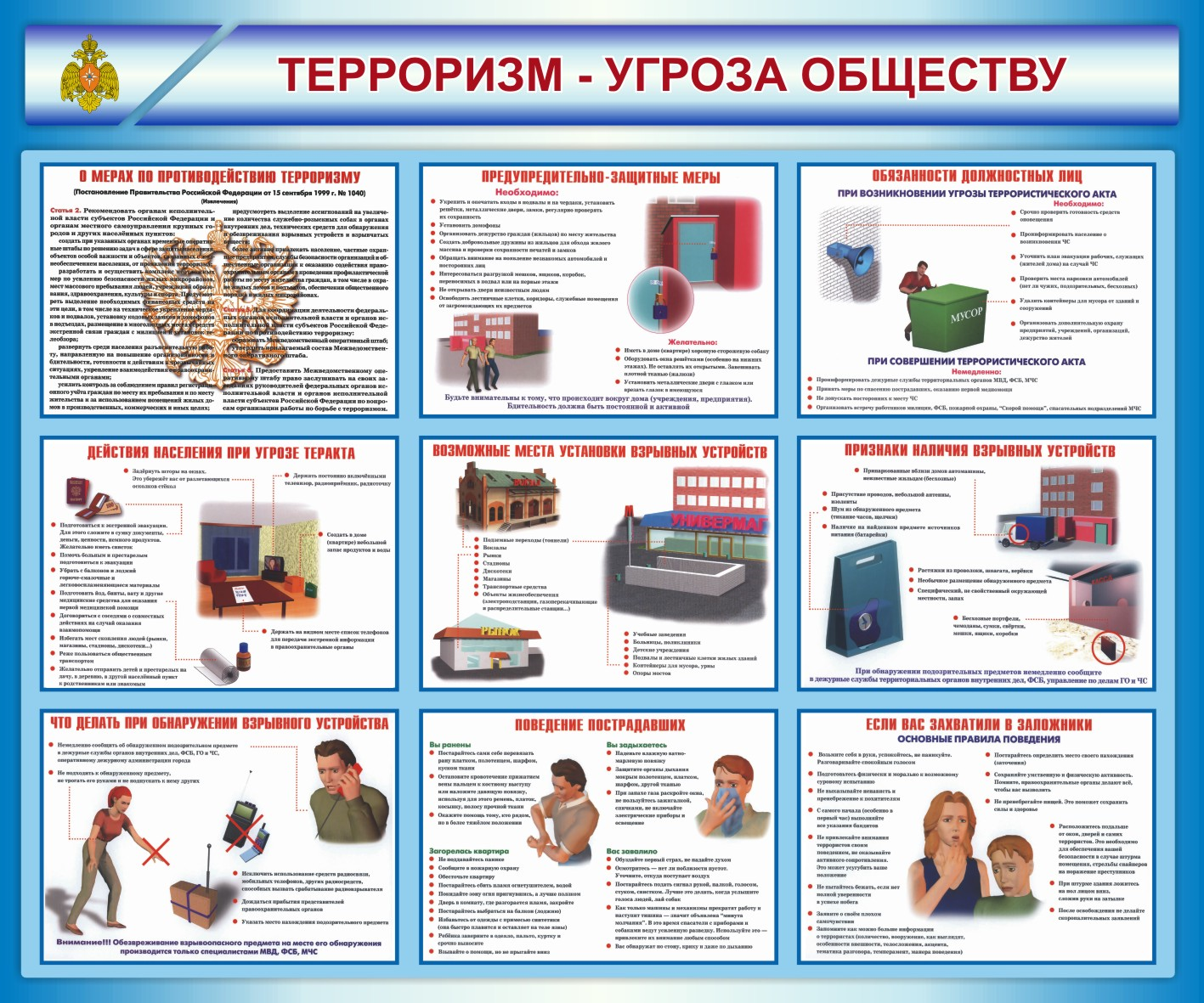 1. Обращайте внимание на подозрительных людей, предметы, на любые подозрительные мелочи. Сообщайте обо всех подозрительных сотрудников правоохранительных органов.